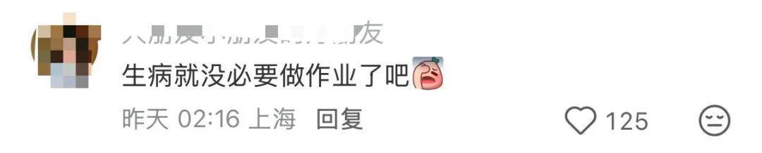 不过,也有网友质疑生病了应该好好休息没必要做作业这样真的好残忍,孩子可怜