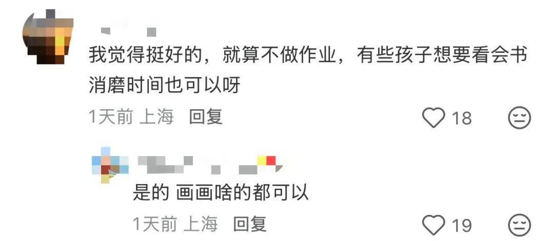 也有网友表示挺好的就算不做作业有些孩子想要看会书消磨时间也是可以的